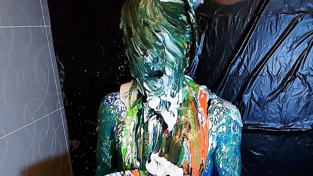Hey everyone, Stephen is back! Let's see how messy he's gonna get! We used 4 cans of shaving cream, 4 bottles of poster paint and 4 buckets of paint. He got painted, pied and humiliated with all the substances. He cummed at the end. Don't hesitate and take a look quickly!