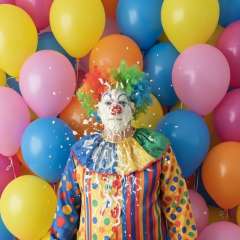 Big Bird the Clown was pied in the face with a real-crust pie by MessyMegan