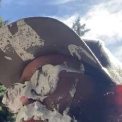 Messymissmia rolled around with BigPerm on a tarp covered with whipped cream